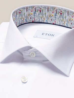 ETON SHIRT – WHITE FLORAL PRINT SIGNATURE TWILL