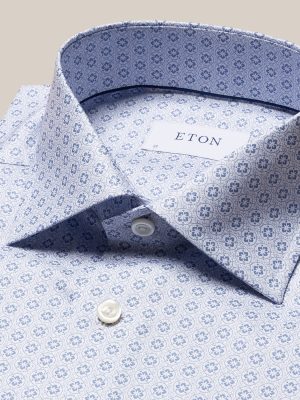 ETON SHIRT – BLUE GEOMETRIC PRINT SIGNATURE TWILL