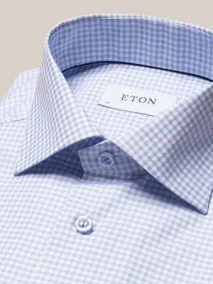 ETON SHIRT – BLUE CHECKED COTTON-LYOCELL STRETCH